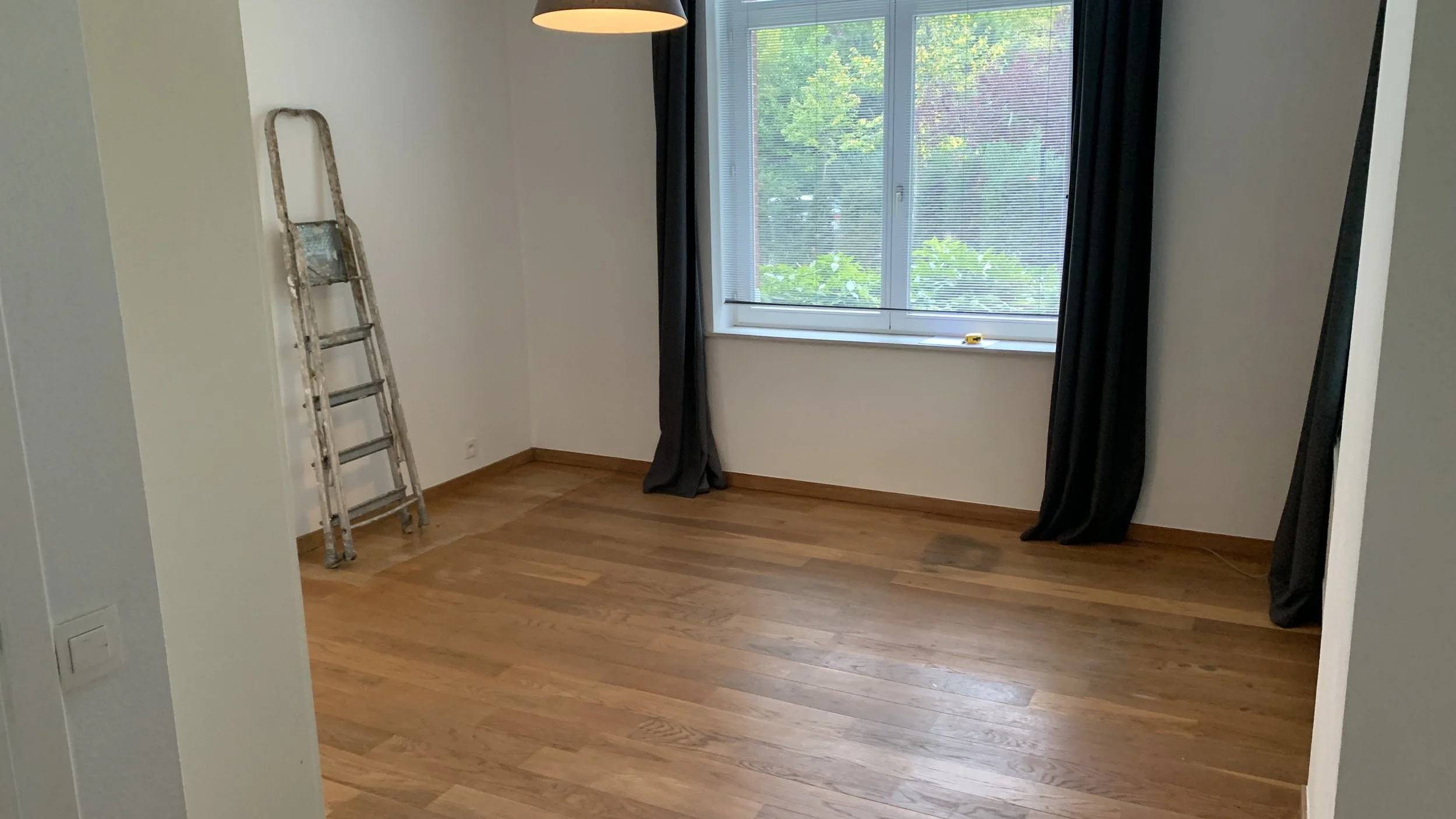 Le mobilier aux lignes simples privilégie la fonctionnalité sans jamais sacrifier l’esthétique : un bureau épuré, des étagères murales légères et un îlot central polyvalent rythment la pièce. Sur les murs, affiches graphiques, illustrations et objets décoratifs composent un mur d’inspiration vivant, reflet d’un univers personnel et sensible, où chaque détail participe à nourrir l’imaginaire.